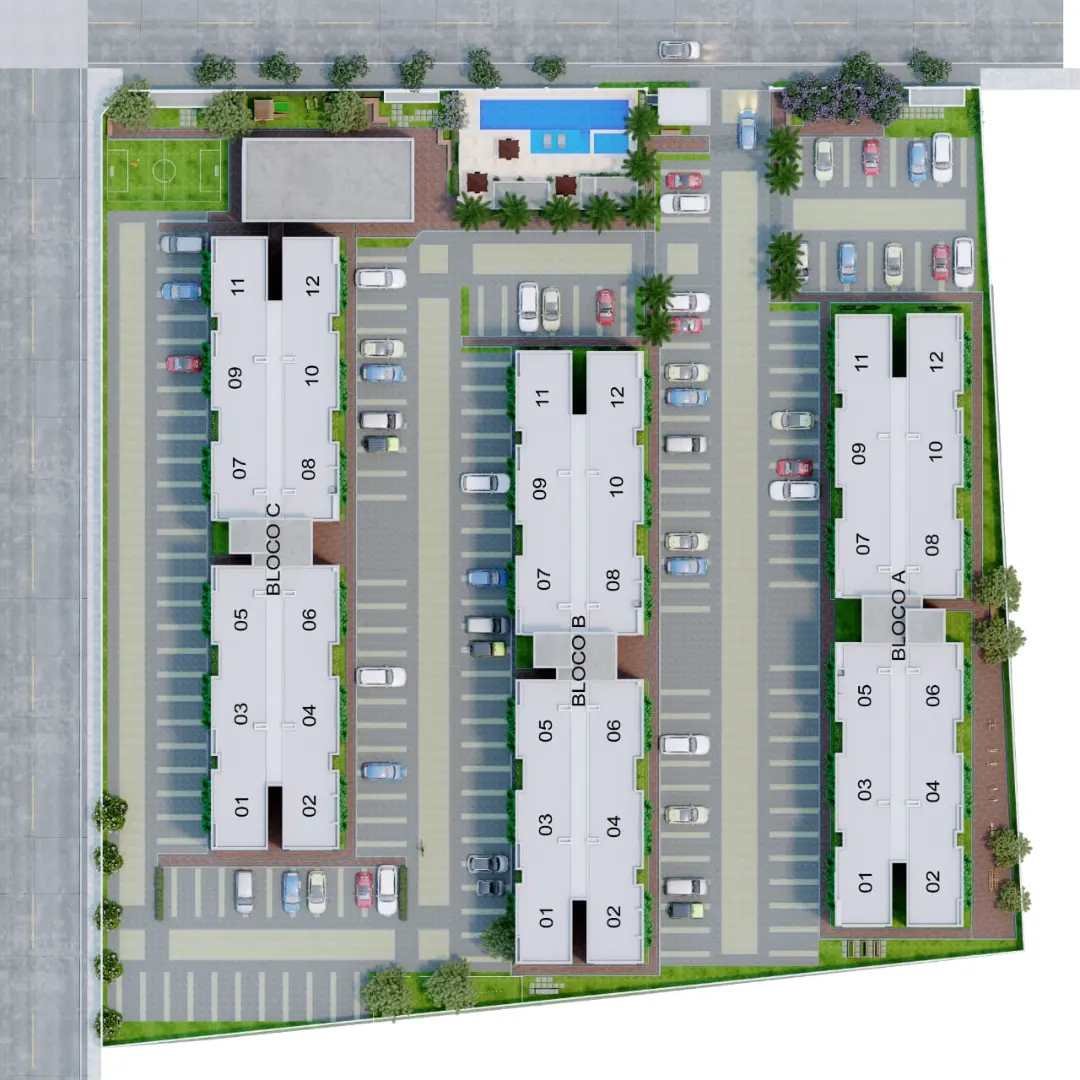 03 blocos de apartamentos + 01 bloco de ambientes comuns