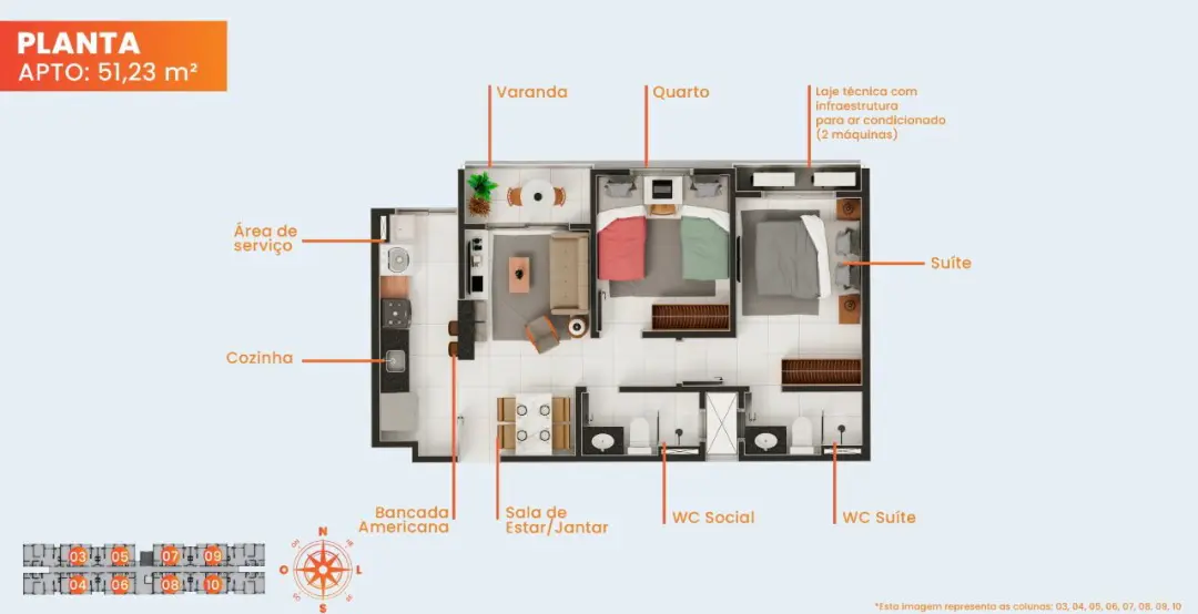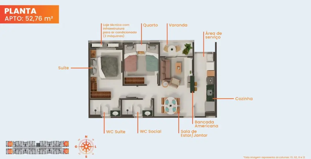 As unidades foram projetadas para otimizar cada metro quadrado, garantindo ventilação e funcionalidade: