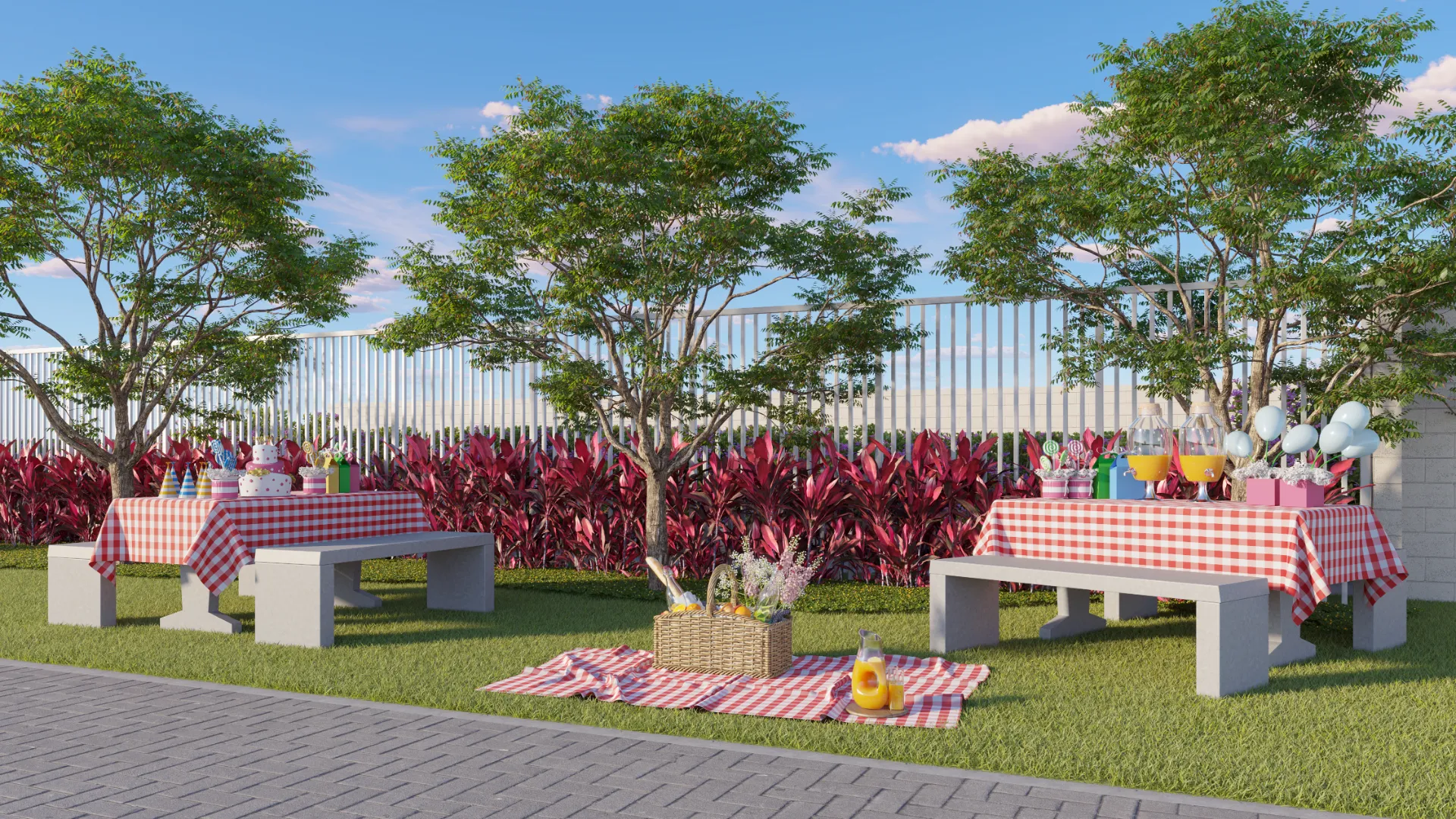 Convivência: Deck com churrasqueira, salão de festas amplo e área para piquenique.