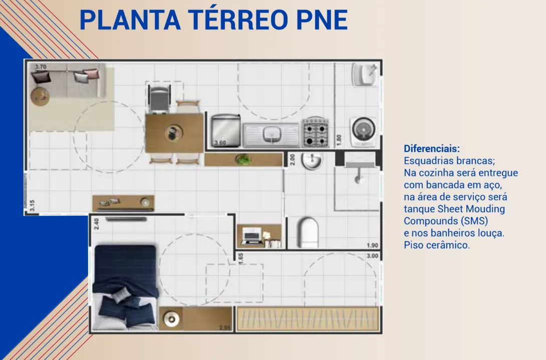 As unidades foram projetadas para otimizar cada metro quadrado, garantindo ventilação e funcionalidade:
