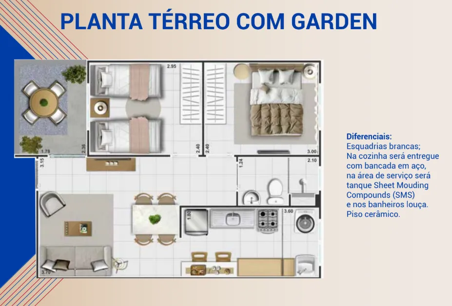 unidades térreo com Garden (área privativa descoberta);