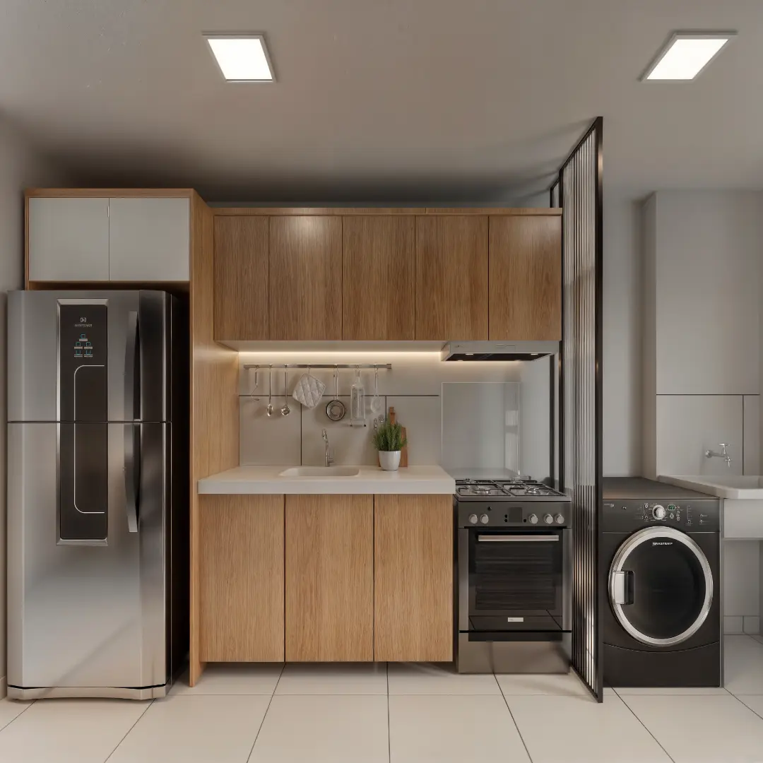 Banheiro social e cozinha funcional;