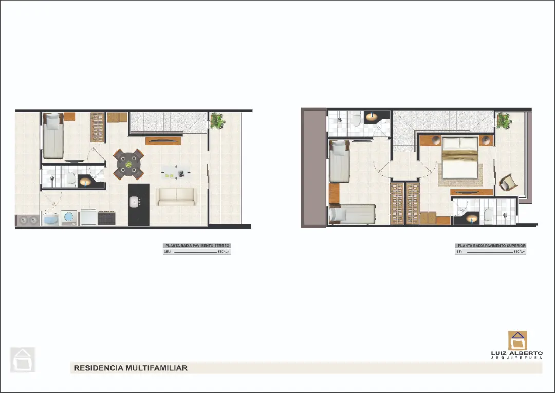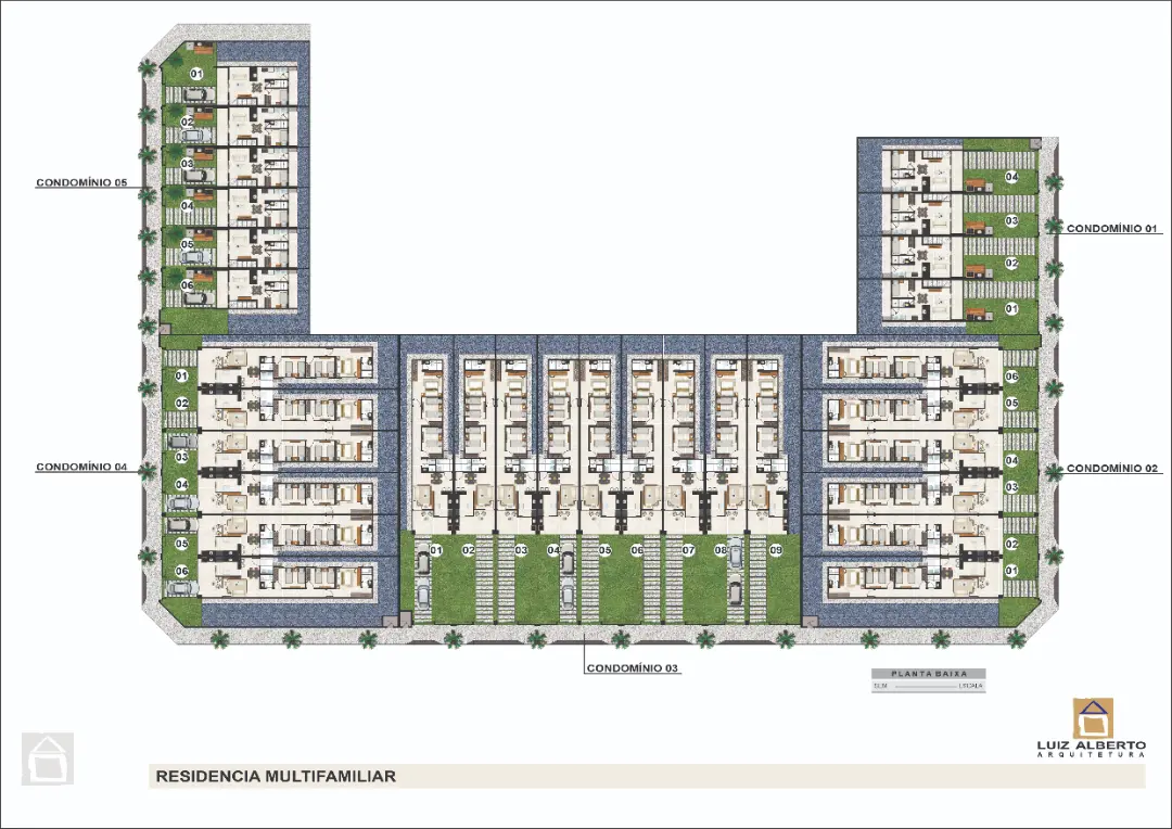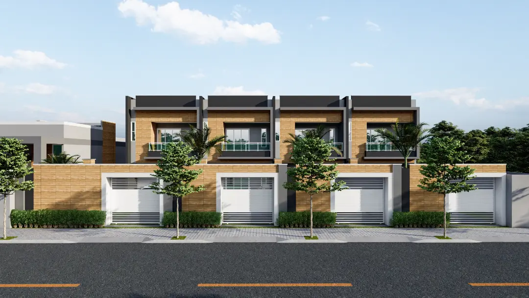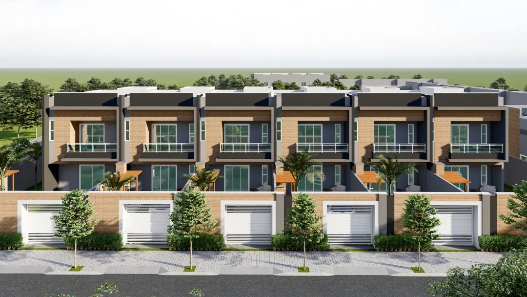 O projeto oferece casas planas e duplex com plantas inteligentes que priorizam a funcionalidade. As unidades contam com opções de 87m² a 89m² de área construída, distribuídas em 3 quartos, sendo até 2 suítes. Os diferenciais incluem salas de estar e jantar integradas, cozinha tradicional, área de serviço externa e 2 vagas de garagem.
