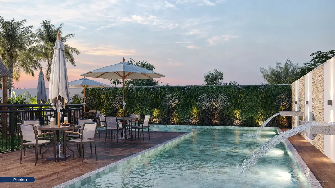 A área comum é entregue equipada e decorada, focada em bem-estar e convivência: