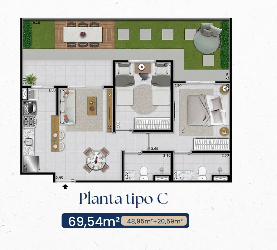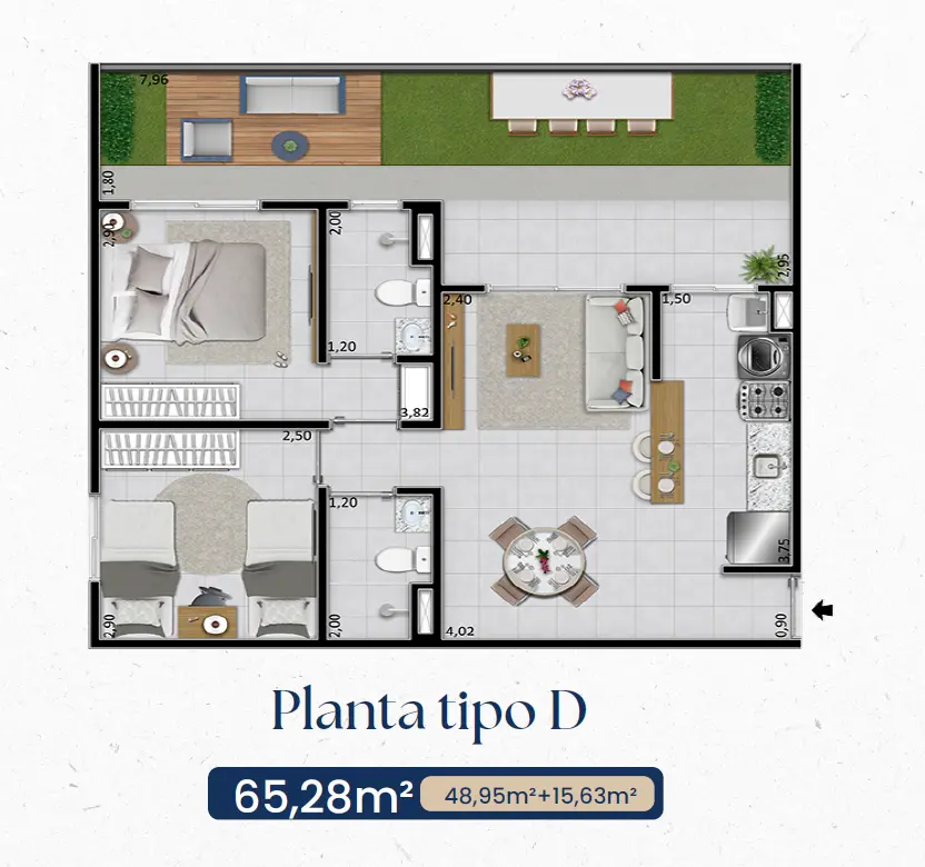 Opções Garden: apartamentos no térreo com quintal privativo, ideal para quem possui pets ou deseja um espaço extra ao ar livre.