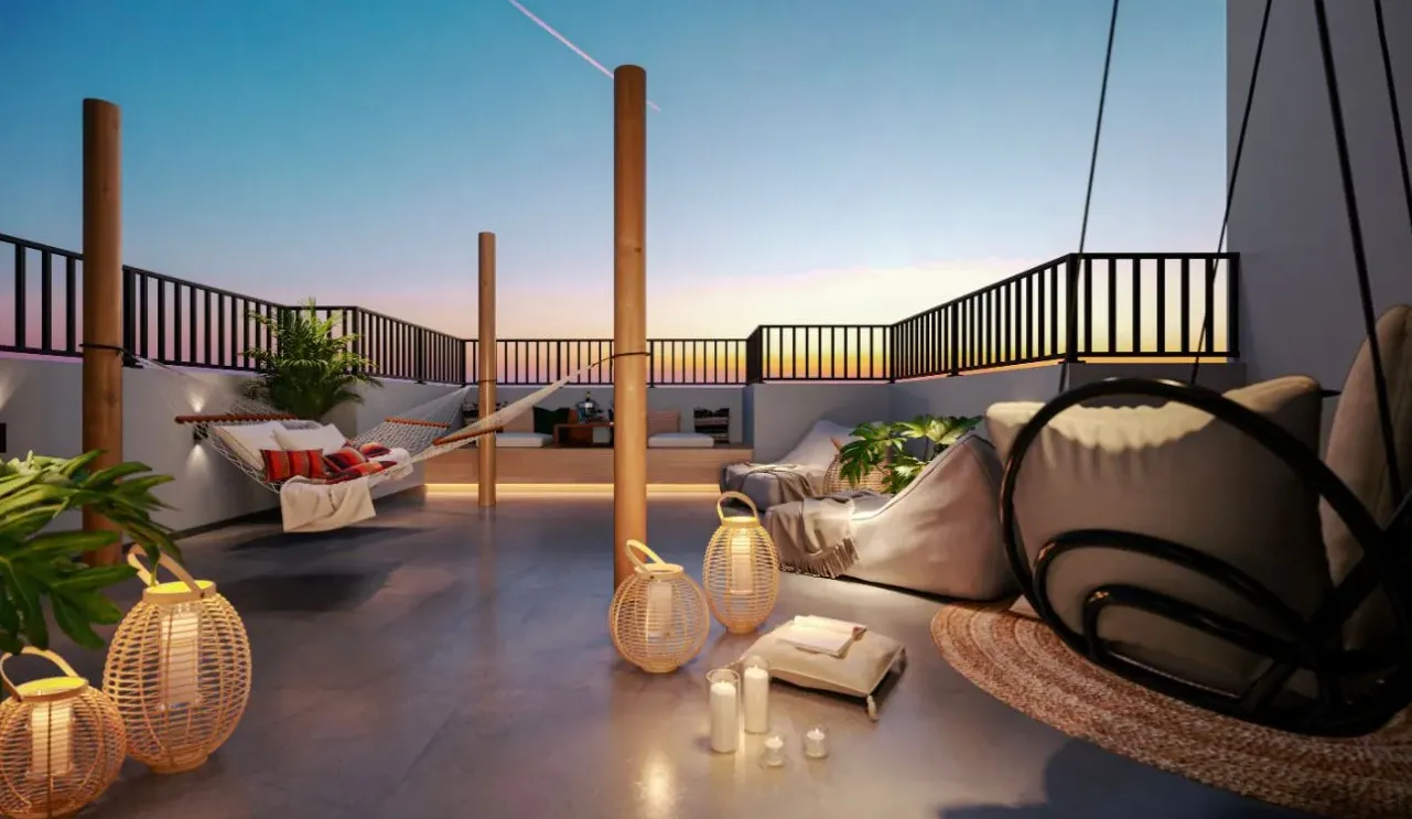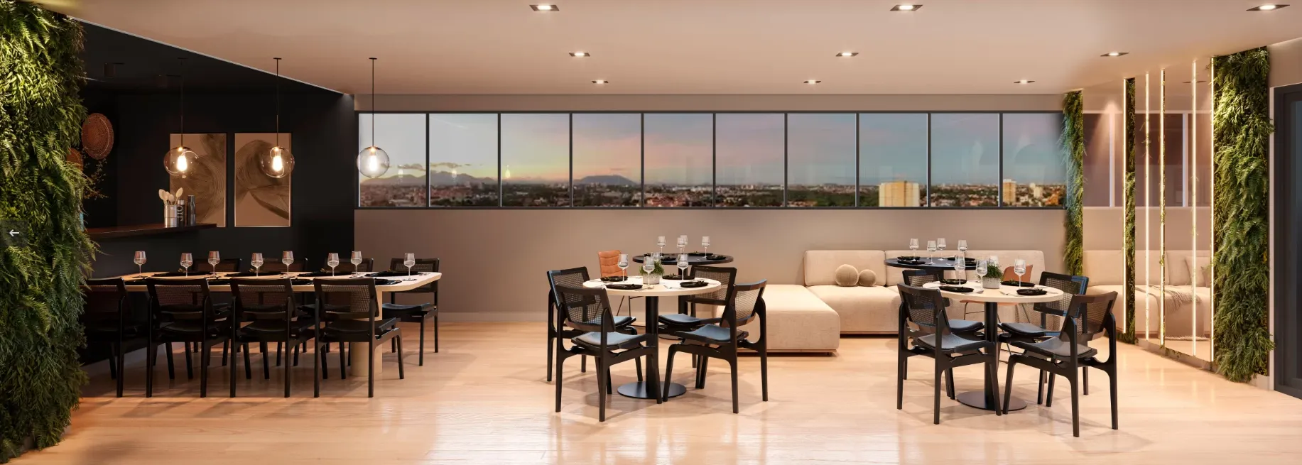 Rooftop Exclusivo: Um terraço completo com cenários deslumbrantes, incluindo o Sky Pub, Terraço Yoga e Terraço Kitchen para celebrar grandes momentos com vista para o infinito.