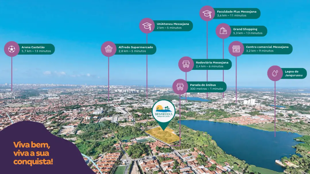 Situado próximo ao Grand Shopping Messejana e ao Centro Universitário UniAteneu, o condomínio oferece fácil acesso a supermercados como Cometa e Pinheiro, além do Terminal da Messejana e da BR-116, garantindo praticidade no dia a dia.