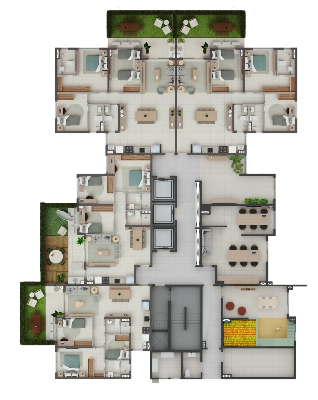4 unidades com garden no pavimento térreo por torre
