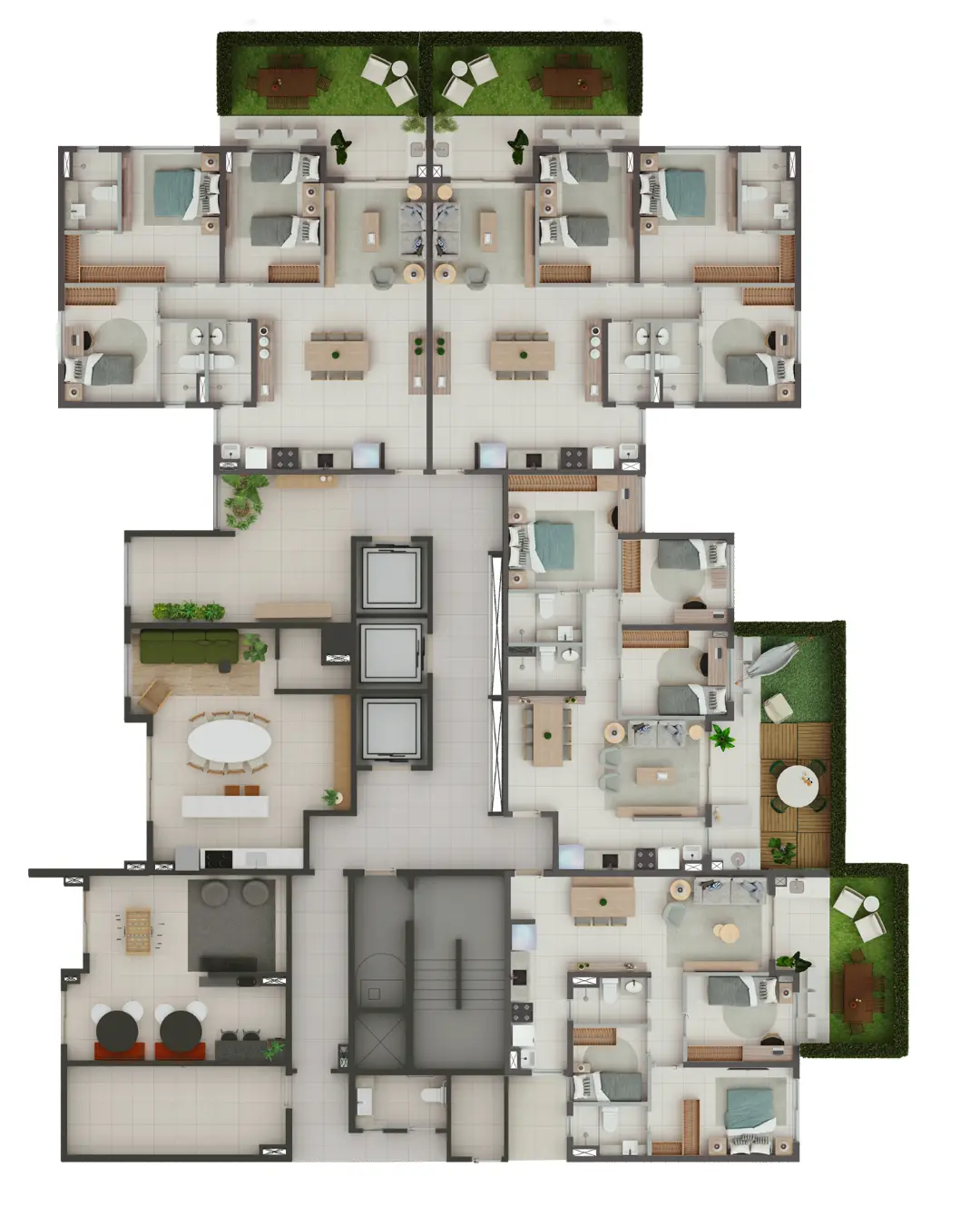 A Moura Dubeux projetou uma área comum que funciona como um verdadeiro clube privativo. O condomínio oferece segurança 24 horas e uma infraestrutura de lazer equipada e decorada, incluindo: