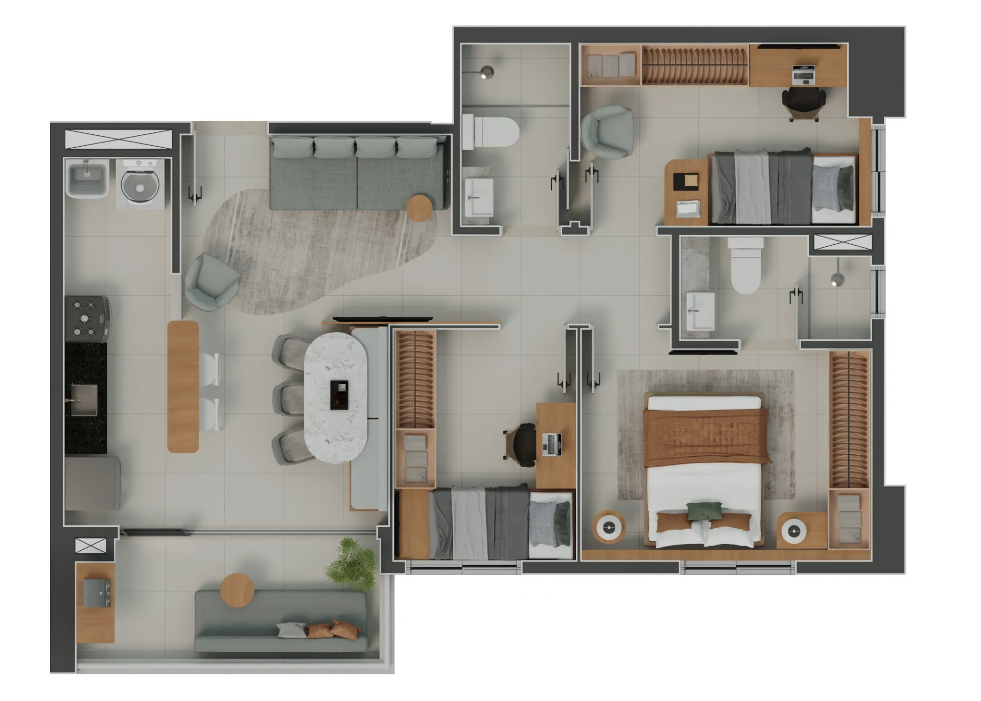 Com opções de 2 ou 3 quartos, o Now Living oferece layouts otimizados para o seu estilo de vida: