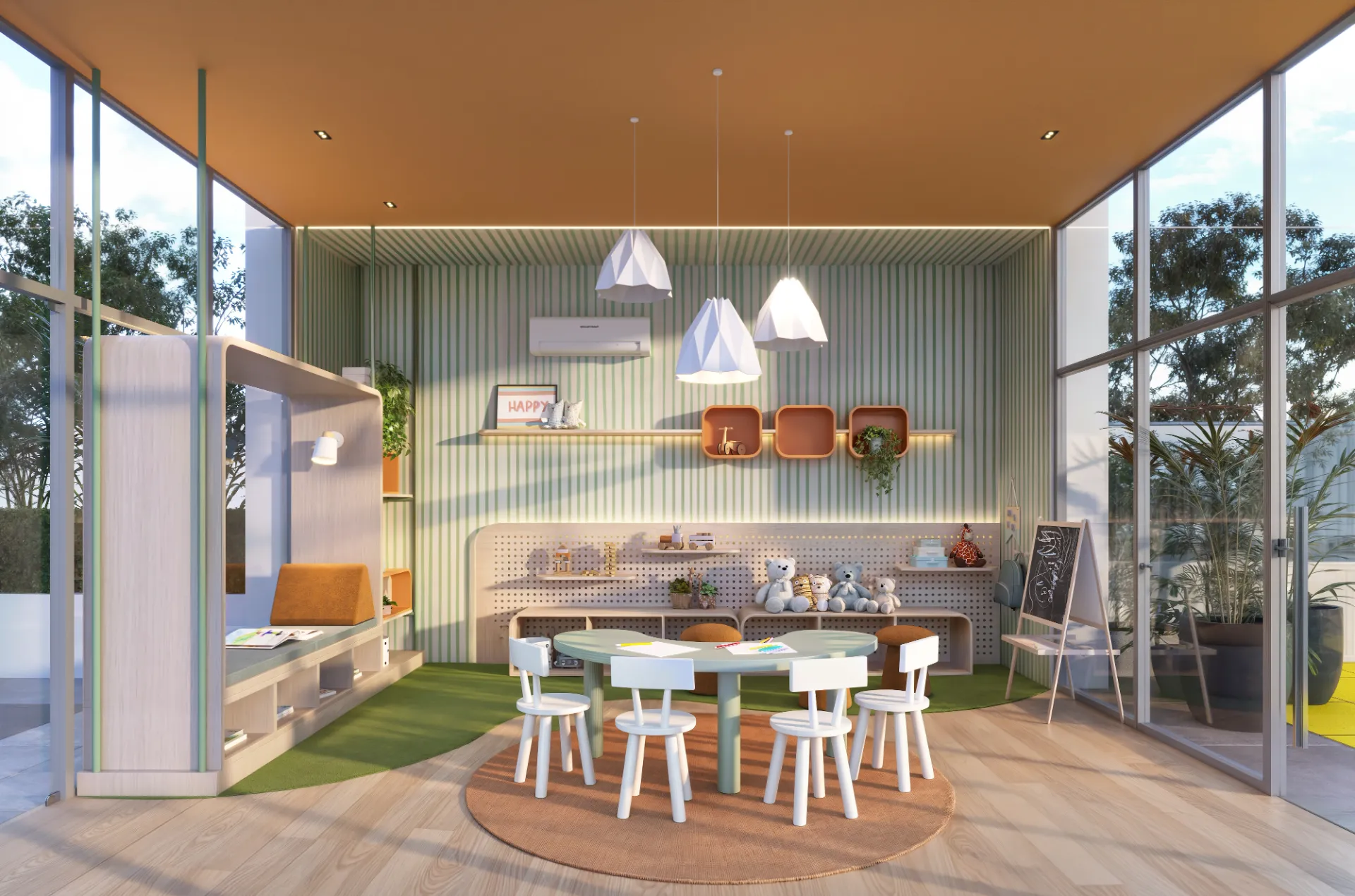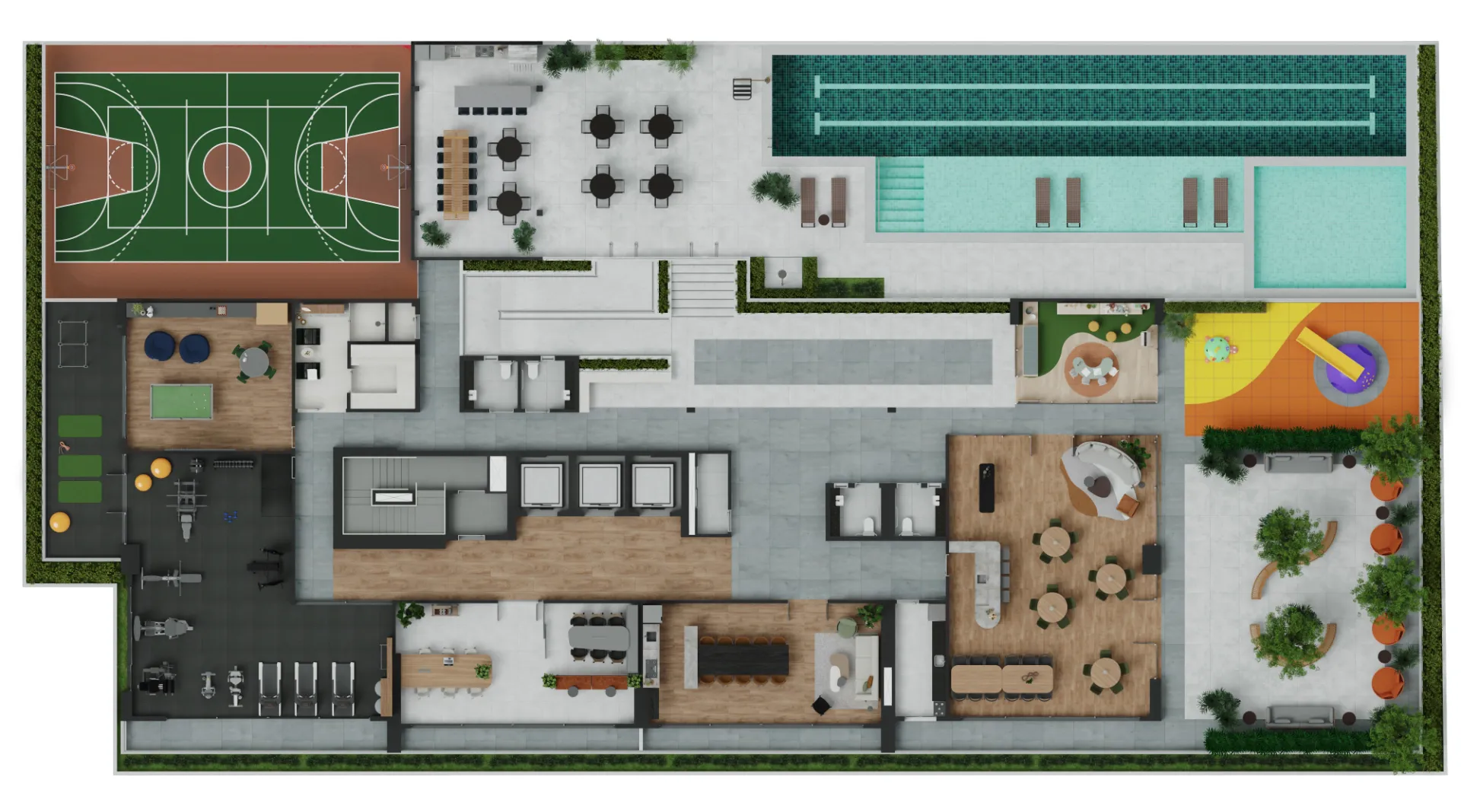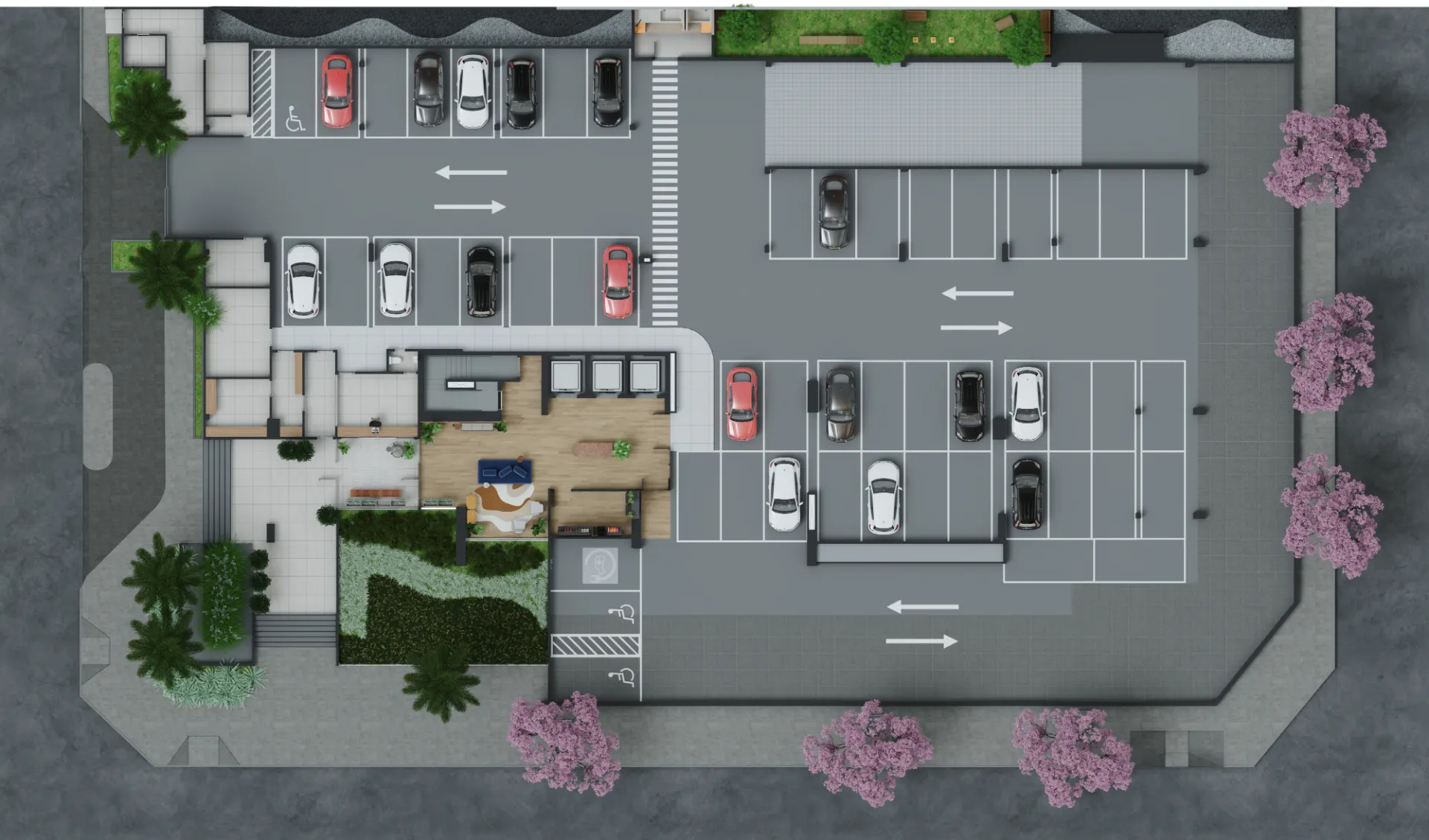 Praça Verde: Paisagismo exuberante para contato com a natureza.