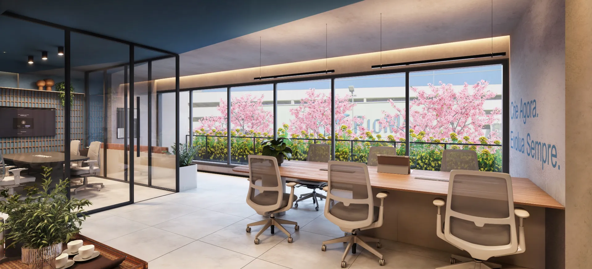 Coworking: Sala de reunião e sacada, perfeito para o home office.