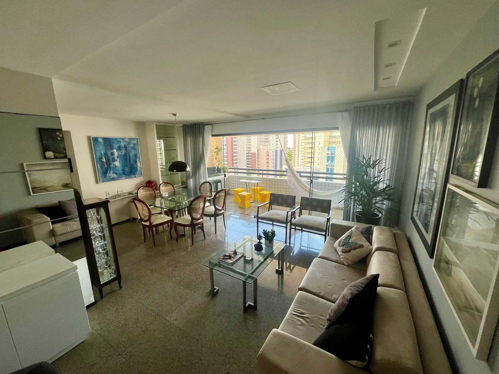 Área Social: Sala ampla integrada à varanda, ideal para múltiplos ambientes.