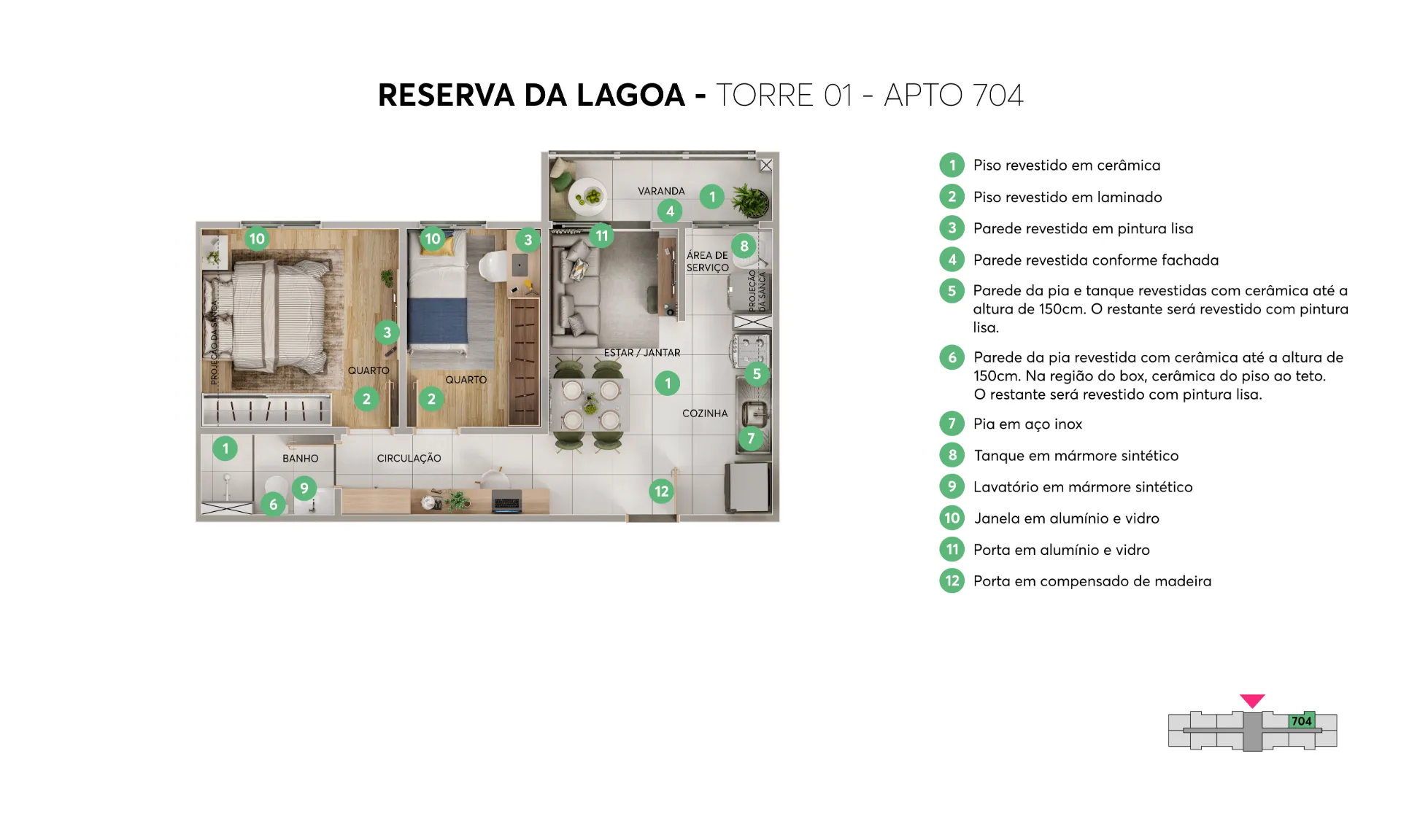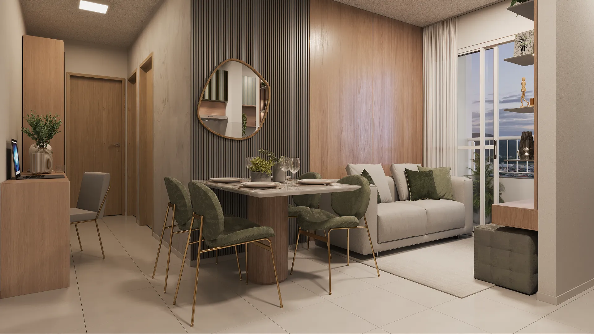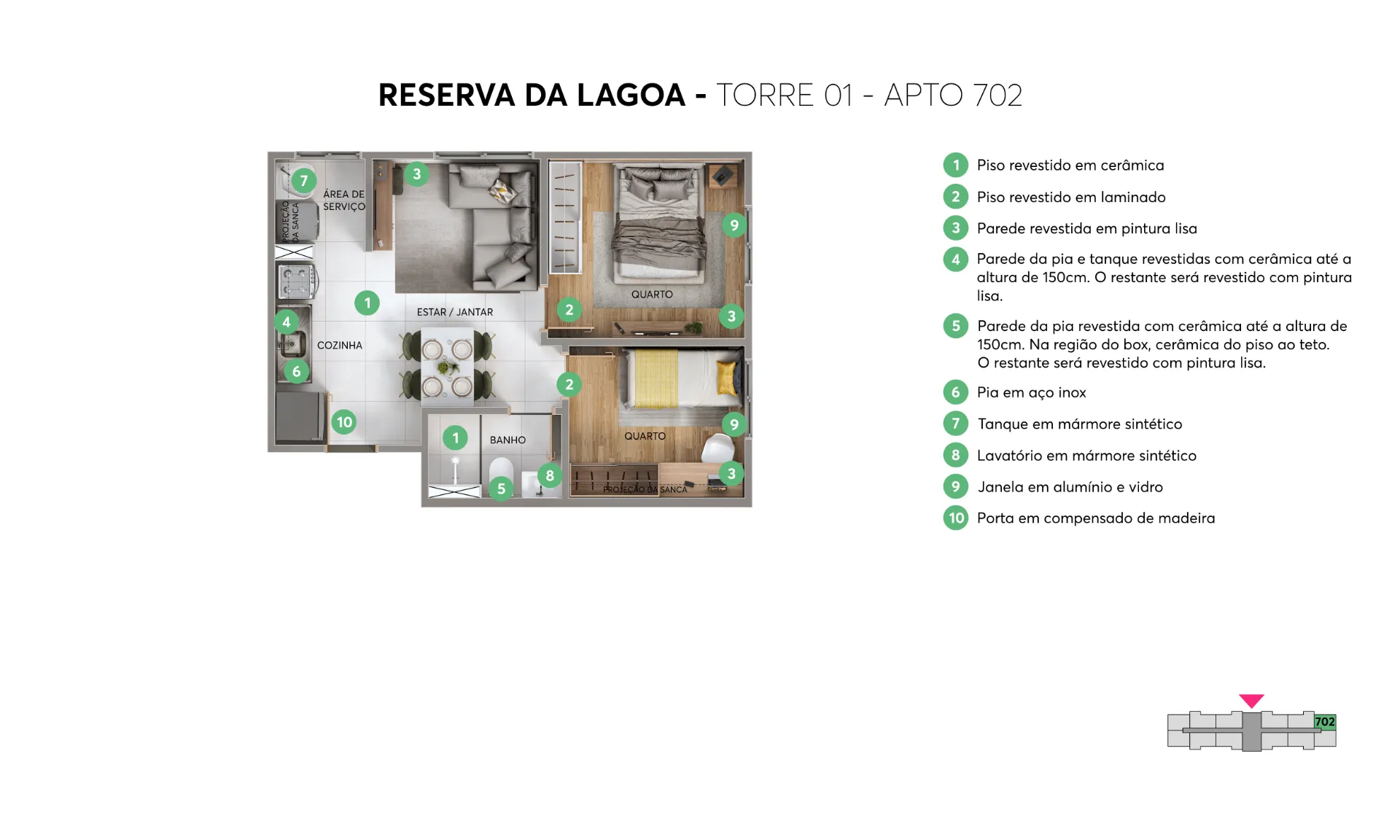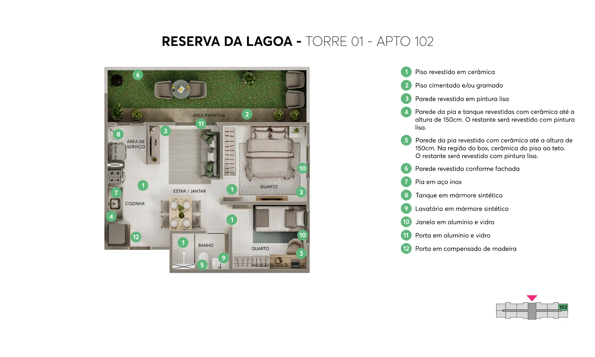 Os apartamentos de 2 quartos contam com plantas inteligentes, opção de varanda e acabamento com piso laminado nos quartos, garantindo um ambiente mais aconchegante. Pensando no seu futuro, o condomínio é sustentável: possui energia solar nas áreas comuns, pomar e sistemas de economia de água que ajudam a reduzir o valor do boleto mensal.