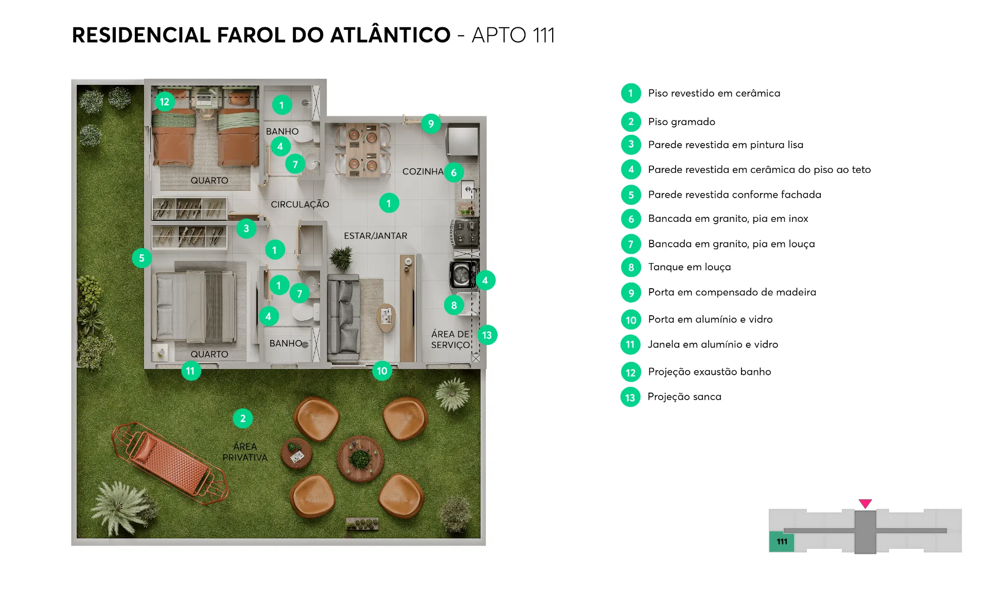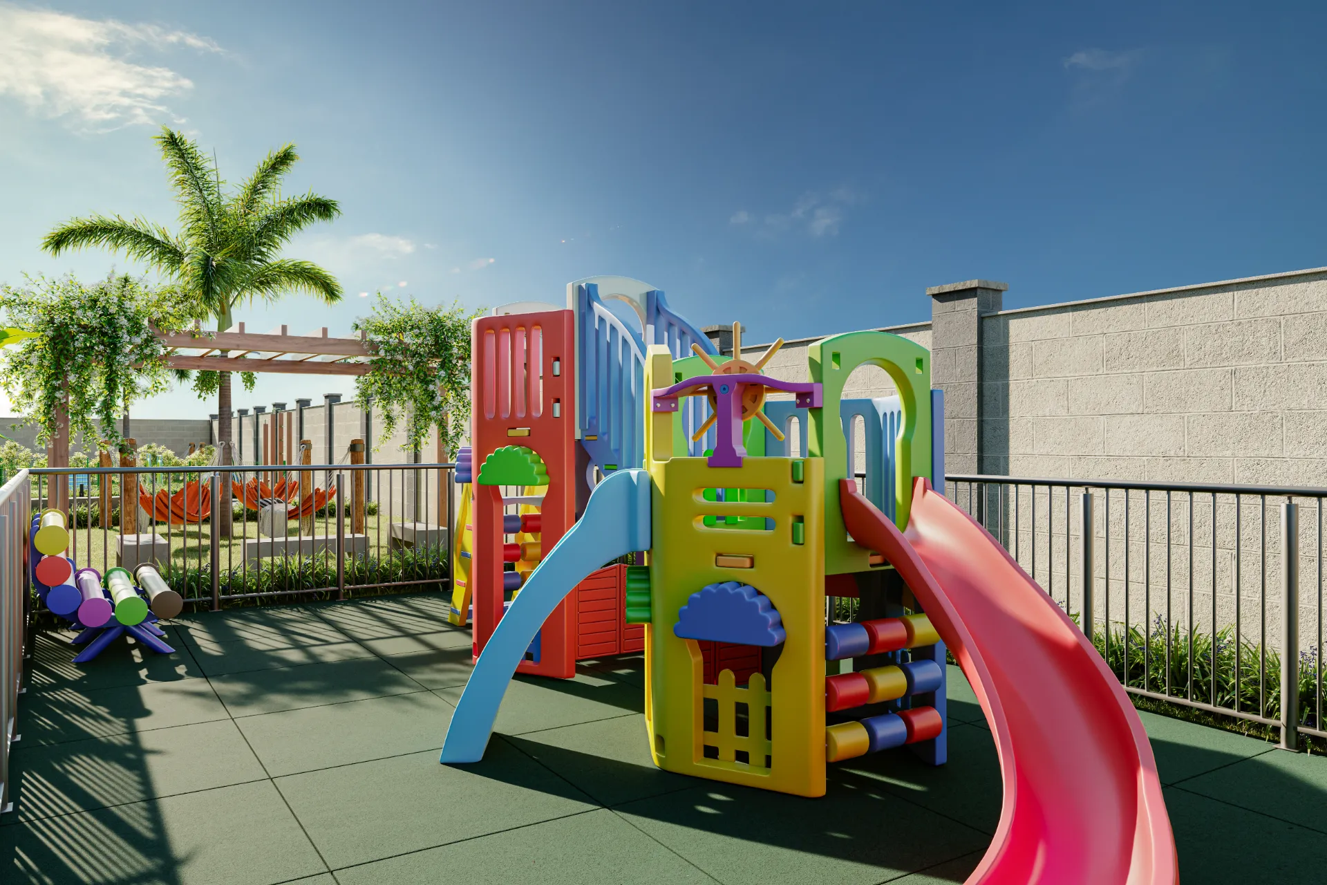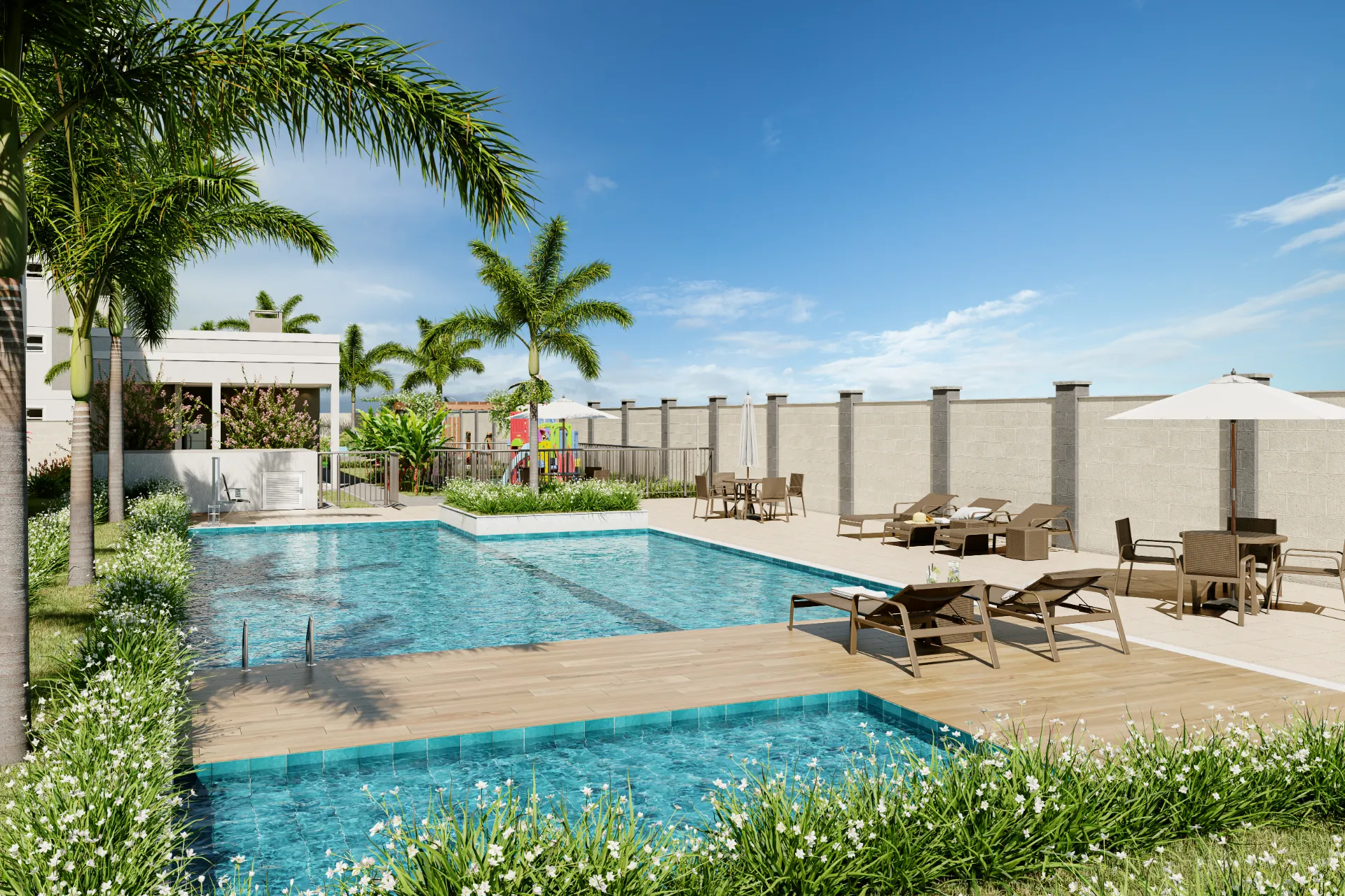 Seja para relaxar na piscina após um longo dia ou para receber os amigos no espaço gourmet, aqui você encontra o cenário perfeito para construir suas melhores memórias. Apartamentos de 2 quartos (com opção de suíte, varanda ou área privativa) em uma torre única, garantindo exclusividade e a segurança que sua família merece.