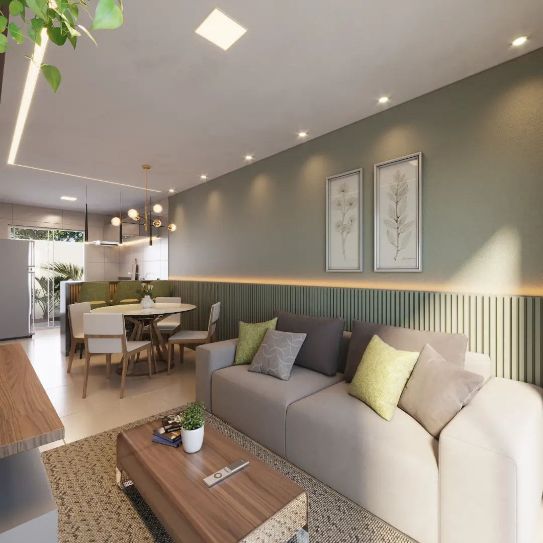As casas possuem planta inteligente, composta por1 suíte no pavimento superior — incluindo quarto com varanda — e salas de jantar e estar integradas no térreo. A estrutura conta ainda com cozinha funcional, área de serviço, banheiro social e opções de unidades com ou sem garden privativo.