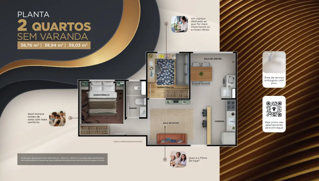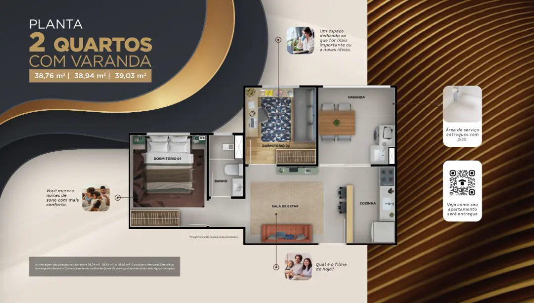 Diferencial: Opções de plantas com varanda, garantindo um espaço extra de lazer e maior circulação de ar.