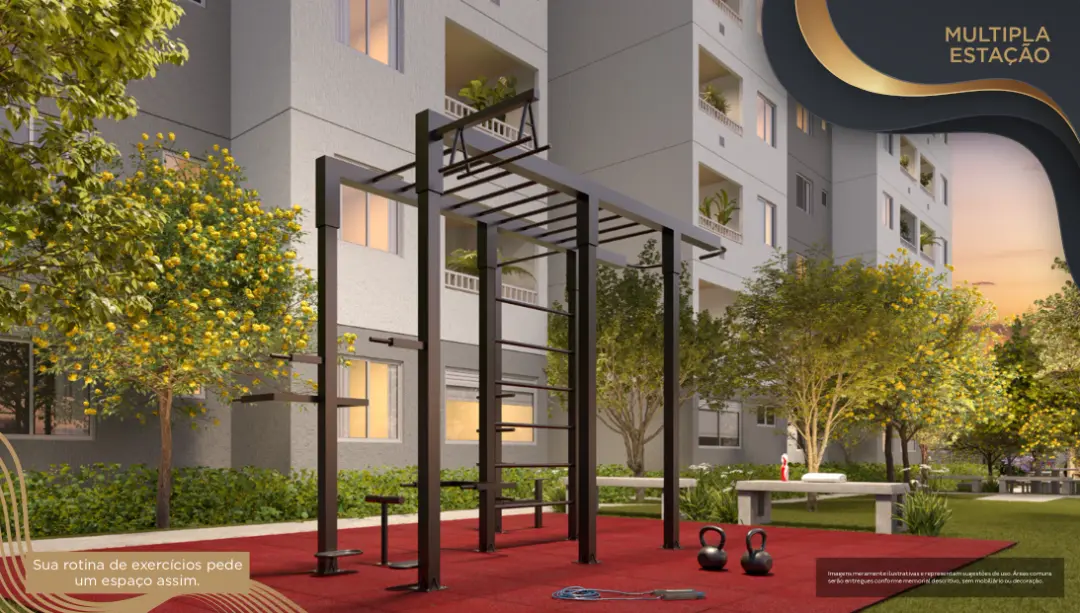 Saúde e Bem-estar: Área Fitness (Cross Fitness) e horta comunitária.
