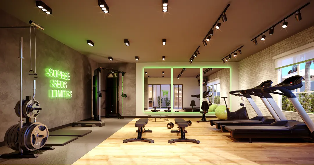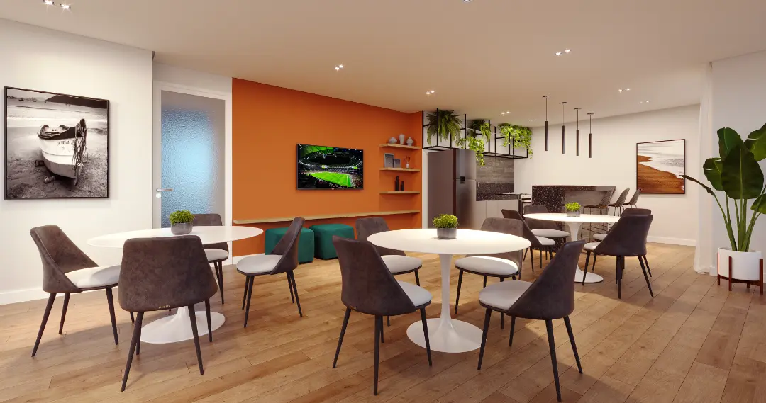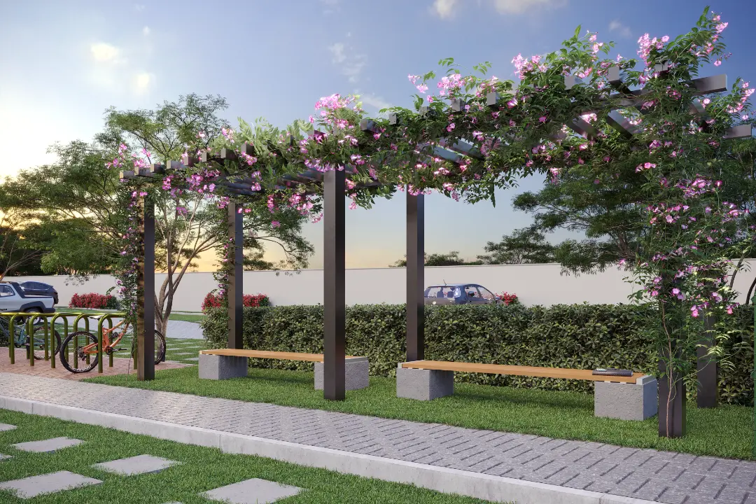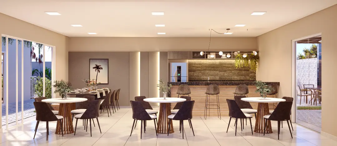 Saúde e Bem-estar: Salão de festas e áreas de convivência integradas ao paisagismo.