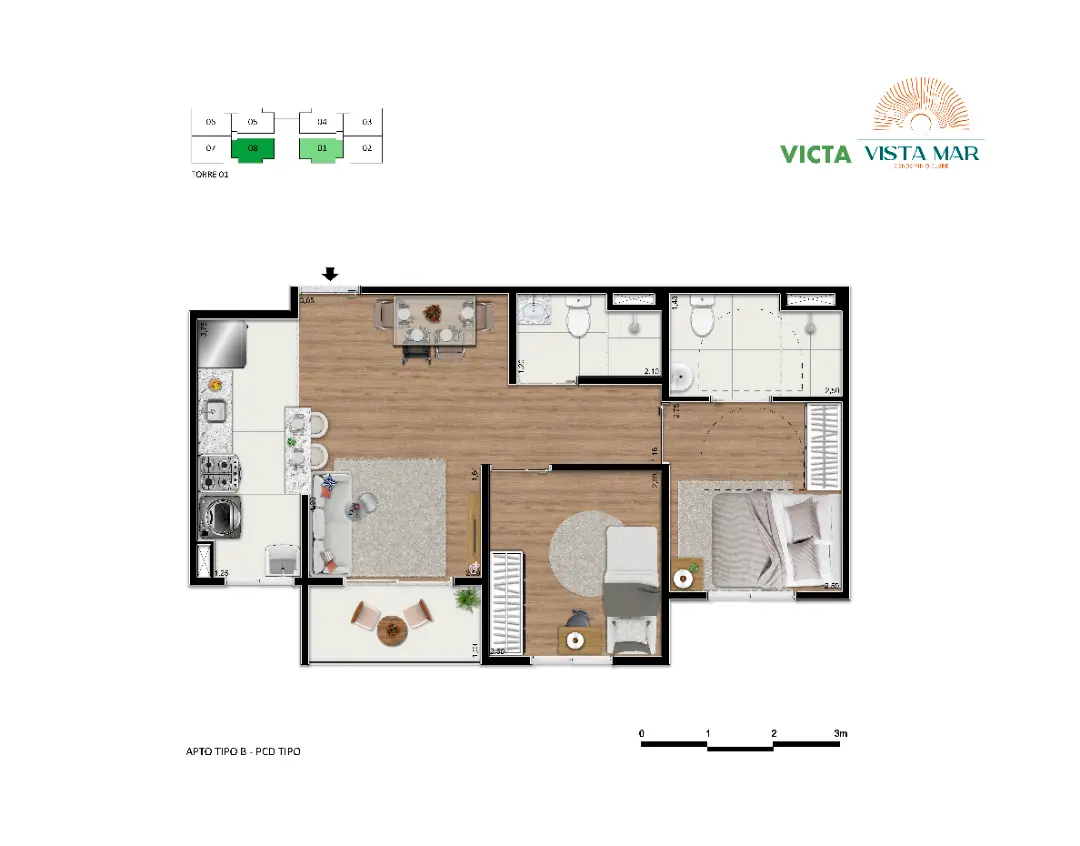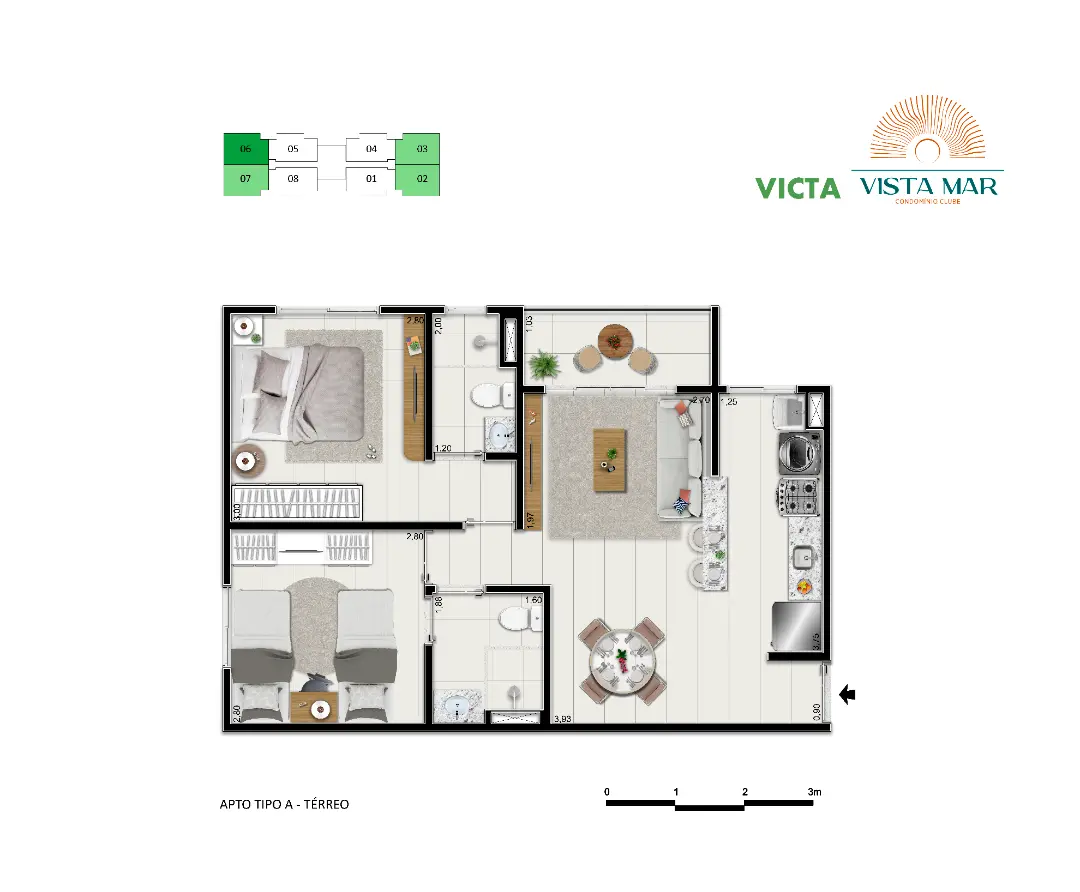 As plantas foram projetadas para oferecer o máximo aproveitamento de espaço e ventilação natural. Com opções que variam entre 47 m² e 73 m², as unidades se adaptam tanto a jovens profissionais quanto a famílias que buscam praticidade:
