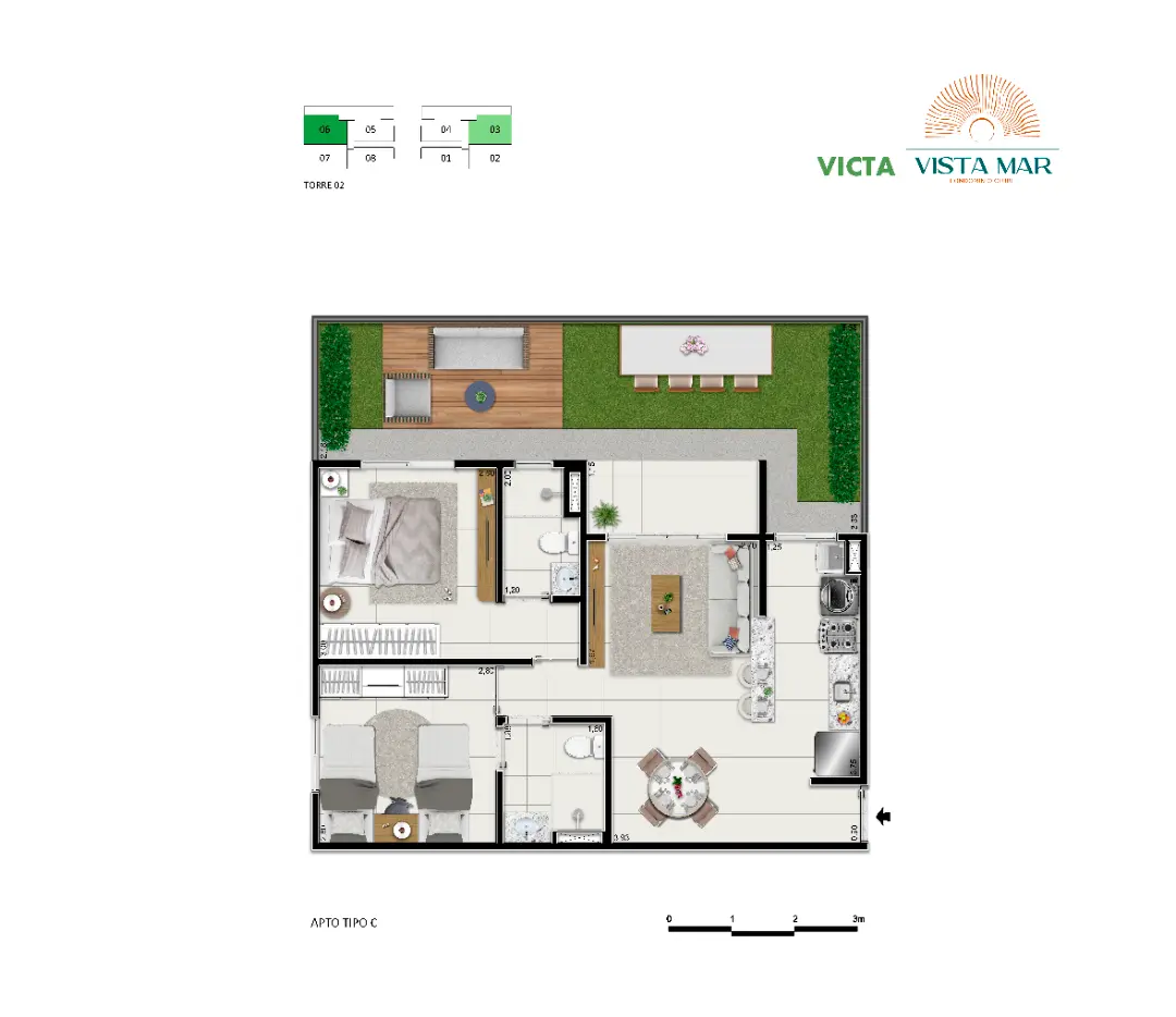 8 unidades por pavimento (exceto rooftop)